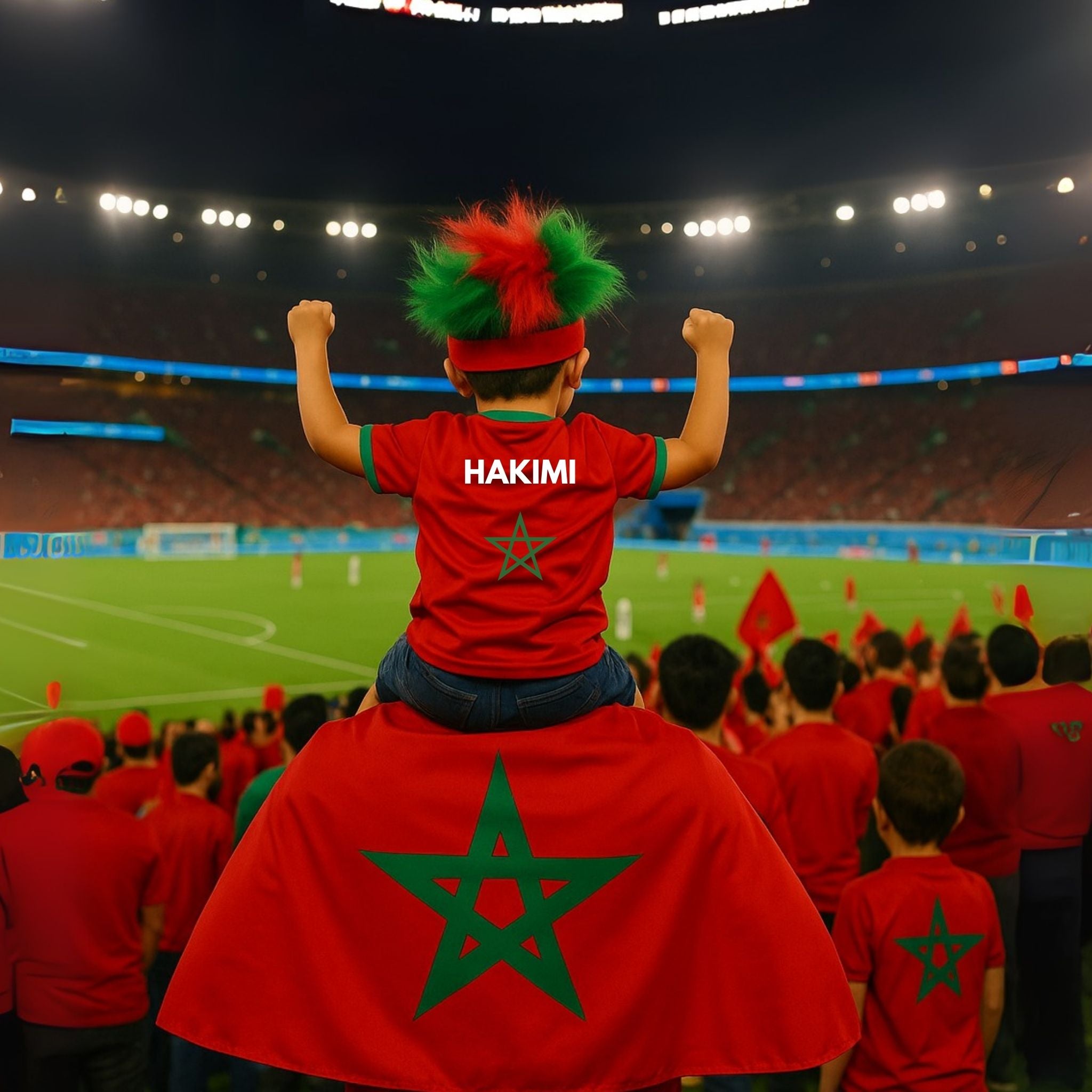 Tout le Maroc dans un seul pack 🇲🇦 : Drapeau du Maroc à enfiler , écharpe, perruque, tatouages éphémères, corne de supporter, lunettes de soleil , et enfin ton sac “Morocco” offert. Créez des souvenirs inoubliables grâce à cette offre exclusive qui réunit tout ce qu’il faut pour vibrer ensemble. ❤️💚